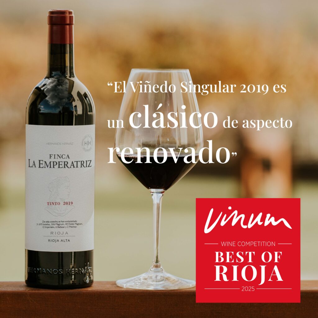 Nuestro Finca La Emperatriz Tinto 2019 ha sido reconocido como el Mejor Vino del certamen Best of Rioja 2025, organizado por la prestigiosa revista Vinum, la revista especializada en vinos líder en Europa.